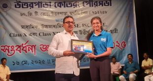 প্রসেনজিৎ ধর, হুগলি:- শুক্রবার উত্তরপাড়া শহরের সমস্ত স্কুলের সর্বোচ্চ নম্বর প্রাপ্ত প্রথম ২ জন ছাত্রছাত্রী ও শহরের চার জন কৃতী খেলোয়াড়কে সংবর্ধনা দিল উত্তরপাড়া কোতরং পুরসভা। শহরের মোট ৯৪ জন ছাত্রছাত্রীকে কৃতিত্বের স্বাক্ষর স্বরূপ তাদের হাতে বিখ্যাত ব্যক্তিদের আত্মজীবনী তুলে দিয়ে তাদের সম্মানিত করে পুরসভা। এদিন উত্তরপাড়ার গণভবনে অনুষ্ঠিত একটি …