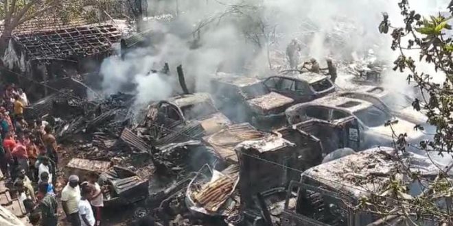 প্রসেনজিৎ ধর, কলকাতা :- শহর কলকাতায় শনিবার অগ্নিকাণ্ডের ঘটনা ঘটল। আজ ইএম বাইপাসের ধারে আরুপোতার একটি গ্যারেজে বিধ্বংসী অগ্নিকাণ্ডের ঘটনা ঘটে। দাউদাউ করে জ্বলতে দেখা যাচ্ছে একাধিক গাড়ি। কালো ধোঁয়ায় কুণ্ডলীতে ঢেকে যায় গোটা এলাকা। এই খবর পেতেই ঘটনাস্থলে প্রথমে আসে দমকলের তিনটি ইঞ্জিন। তারপর যুদ্ধকালীন তৎপরতায় শুরু হয় আগুন নেভানোর কাজ। অগ্নিকাণ্ডের জেরে বাসিন্দাদের ঘটনাস্থল থেকে সরিয়ে ফেলা হয়। বিদ্যুৎ বিচ্ছিন্ন পর্যন্ত করা হয় গোটা এলাকার। পুড়ে ছাই হয়ে গিয়েছে একাধিক গাড়ি। এলাকার বাসিন্দারাই আগুন নেভানোর কাজে হাত লাগান।যে এলাকায় আগুন লেগেছে সেখানে আশেপাশে জনবসতি রয়েছে। স্বাভাবিকভাবেই তাই আগুন ছড়িয়ে পড়ার আশঙ্কা করছেন স্থানীয় বাসিন্দারা। যদিও ইতিমধ্যে গ্যারেজের পাশ থেকে বাসিন্দাদের সরিয়ে নেওয়ার কাজ শুরু হয়েছে। তবে কীভাবে এই আগুন লাগল, তা এখনও পর্যন্ত জানা যায়নি। এই অগ্নিকাণ্ডের ঘটনায় অন্তত ১০ থেকে ১২টি গাড়ি পুড়ে ছাই হয়ে গেছে। গ্যারেজে তেল, মোবিল সহ বহু দাহ্য পদার্থ ছিল। তাই আরও বিধ্বংসী অগ্নিকাণ্ডের আশঙ্কা করা হচ্ছিল। তবে তেমন ঘটনা এখনও পর্যন্ত ঘটেনি। যদিও গ্যারেজের ঠিক কোন জায়গা থেকে আগুন ছড়িয়েছে তা জানতে পারেনি দমকল। এখনও পর্যন্ত ক্ষয়ক্ষতি পরিমাণ সম্পর্কেও আঁচ করা যায়নি।দমকল কর্মীরা জানিয়েছেন, আগুন সম্পূর্ণ নিয়ন্ত্রণে না এলে অগ্নিকাণ্ডের কারণ বোঝা সম্ভব নয়। তবে ভিতরে কেউ আটকে ছিলেন না এটা নিশ্চিত। হতাহতের তাই কোনও খবর নেই। আরুপোতা ঘিঞ্জি এলাকা হওয়ায় আগুন দেখে আতঙ্ক ছড়ায় স্থানীয় বাসিন্দাদের মধ্যে। দমকল সূত্রে খবর, গ্যারেজের বাইরে থেকে পাইপের মাধ্যমে জল দিয়ে আগুন নেভানোর চেষ্টা করা হয়েছে। বেশ কিছুক্ষণের চেষ্টায় আগুন নিয়ন্ত্রণে আসে।