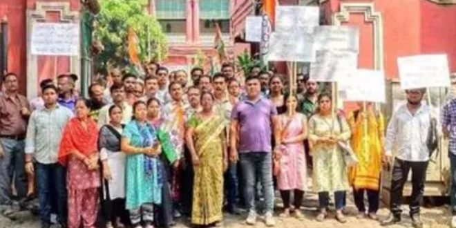 প্রসেনজিৎ ধর, কলকাতা :-আবারও অশান্ত রবীন্দ্রভারতী বিশ্ববিদ্যালয়। সোমবারের পর মঙ্গলবারও বিশ্ববিদ্যালয়ের জোড়াসাঁকো ক্যাম্পাসে বিক্ষোভ কর্মসূচি পালন করা হয়। এই বিক্ষোভে যাঁরা সামিল হয়েছেন, তাঁদের অধিকাংশই বিশ্ববিদ্যালয়ের পড়ুয়া এবং তৃণমূল ছাত্র পরিষদের সদস্য ও সমর্থক।বেশ কয়েকদিন ধরেই অস্থায়ী উপাচার্যের বিরুদ্ধে ক্যাম্পাস চত্বরে ক্ষোভ দানা বাঁধছিল। গতকাল সোমবার জোড়াসাঁকো ক্যাম্পাসে বিক্ষোভ শুরু হয়। অস্থায়ী উপাচার্যের বিরুদ্ধে শুরু হয় স্লোগানিং। ক্যাম্পাসের বাইরেও বিক্ষোভ চলতে থাকে। গতকাল অস্থায়ী উপাচার্য শুভ্রকমল মুখোপাধ্যায় ক্যাম্পাসে এসে কাজে যোগ দিয়েছিলেন। কিন্তু এদিন তিনি ক্যাম্পাসে আসার আগেই জোরালো বিক্ষোভ শুরু হয়। আন্দোলনরত পড়ুয়ারা তাঁর ঘরের সামনে প্ল্যাকার্ড নিয়ে অবস্থান বিক্ষোভে বসেন। উপাচার্যের ঘরে তালা ঝুলিয়ে বিক্ষোভও দেখানো হয়। মুহূর্তে উত্তাল হয়ে ওঠে ক্যাম্পাস চত্বর।অভিযোগ মূলত দু’টি। প্রথমত, বিশ্ববিদ্যালয়ের অস্থায়ী উপাচার্য শুভ্রকমল মুখোপাধ্যায় নাকি নিজের মতো বিশ্ববিদ্যালয়ের কাজ পরিচালনা করছেন! এবং এই সংক্রান্ত বিভিন্ন অনিয়মে তাঁকে মদত দিচ্ছেন বিশ্ববিদ্যালয়ের অস্থায়ী রেজিস্ট্রার! এমনকী, তাঁরা বিশ্ববিদ্যালয়ের পড়ুয়া থেকে শুরু করে অধ্যাপক ও অধ্যাপিকা এবং অশিক্ষক কর্মীদের সঙ্গে দুর্ব্যবহার করছেন বলেও দাবি করা হচ্ছে বিক্ষোভকারীদের পক্ষ থেকে।দ্বিতীয়ত, এই প্রেক্ষাপটে বিশ্ববিদ্যালয়ের সুস্থ ও স্বাভাবিক পঠনপাঠনের পরিবেশ নষ্ট হচ্ছে বলে অভিযোগ করা হচ্ছে। এবং সেইসঙ্গে পঠনপাঠনের স্বাভাবিক পরিবেশ ফেরাতে অবিলম্বে স্থায়ী উপাচার্য এবং স্থায়ী রেজিস্ট্রার নিয়োগের দাবি তোলা হচ্ছে।রবীন্দ্রভারতী বিশ্ববিদ্যালয়ের এই সমস্যা দীর্ঘদিনের। ২০২৩ সাল থেকে এখানকার ভারপ্রাপ্ত উপাচার্য প্রাক্তন বিচারপতি শুভ্রকমল মুখোপাধ্যায়। রেজিস্ট্রারও অস্থায়ী। আর তাতেই পড়ুয়াদের অভিযোগ, নিজেদের মতো করেই বিশ্ববিদ্যালয় চালাচ্ছেন তাঁরা। তাতে আসল পড়াশোনার পরিবেশ ব্যাহত হচ্ছে। মাস খানেক আগে রবীন্দ্রভারতীর বিটি রোড ক্যাম্পাসেই বিক্ষোভ শুরু হয়েছিল। সেসময় দু,একবার উপাচার্যকে বিক্ষোভের মুখে পড়তে হয়েছিল।বিক্ষোভকারীদের দাবি, স্থায়ী উপাচার্য, রেজিস্ট্রার নিয়োগ করতে হবে।
