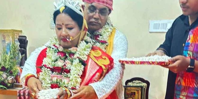 দেবরীনা মণ্ডল সাহা, কলকাতা :- লাল বেনারসিতে নববধূ রিঙ্কু, হলুদ পাঞ্জাবিতে বর দিলীপ ঘোষের সঙ্গে সাতপাকে বাঁধা পড়লেন আইনি ও বৈদিক নিয়ম মেনেই।সংঘের প্রচারক থেকে বিধায়ক, সাংসদ, রাজ্য সভাপতি, সর্বভারতীয় সহ–সভাপতি হয়েছিলেন বিজেপির দৌলতে। সংসার জীবনে নতুন আঙ্গিকে এবার দেখা গেল দিলীপ ঘোষকে |দিলীপের ইচ্ছামতো গাঁটছড়া বাঁধার সাক্ষী থাকলেন শুধুই বর-কনের পরিবার এবং তাদের ঘনিষ্ঠ কয়েক জন। বিয়ে পর্ব মিটে যাওয়ার পরে বাড়ির বাইরে এসে সাংবাদিকদের মুখোমুখি হয়ে রাজ্য বিজেপির প্রাক্তন সভাপতি জানিয়ে দিলেন, মায়েরদায়িত্ব যাতে আরও ভালভাবে পালন করতে পারেন, তাই এই সিদ্ধান্ত। তবে বিয়ে করলেও তিনি রাজনৈতিক দায়িত্ব থেকে সরছেন না। আর সেই কাজে দিলীপের পাশে থাকার বার্তা দিলেন নববধূ রিঙ্কু|ঘরোয়া আবহে হলেও একেবারে রাজকীয় আয়োজন, আবেগ আর আনন্দে মোড়া রইল দিলীপ-রিঙ্কুর নতুন জীবনে প্রবেশের মুহূর্ত। মালা বদল থেকে সিঁদুর দান সবই হল দিলীপ রিঙ্কুর বিয়েতে। মাছ, ভাত, মিষ্টি সহযোগে সারা হল ভুরিভোজও।