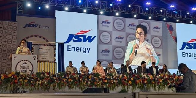 প্রসেনজিৎ ধর, কলকাতা :- পশ্চিম মেদিনীপুরের শালবনিতে জিন্দলগোষ্ঠীর তাপবিদ্যুৎ কেন্দ্রের শিলান্যাস করলেন মুখ্যমন্ত্রী মমতা বন্দ্যোপাধ্যায়। ওই অনুষ্ঠানে তাঁর সঙ্গে ছিলেন বাংলার ‘ব্র্যান্ড অ্যাম্বাসাডর’ সৌরভ গঙ্গোপাধ্যায়ও।শিলান্যাস হল ২০০০ একরের শিল্প পার্কেরও। আর সেই অনুষ্ঠান থেকেই মুখ্যমন্ত্রী মমতা বন্দ্যোপাধ্যায়ের প্রশংসায় পঞ্চমুখ হলেন সজ্জন জিন্দল। বলেন, ”লাখ বছরের মধ্যে দিদির মতো নেতা পাওয়া যায়। গরিবদের জন্য দিদির সবসময় ভাবনা থাকে।”চলতি বছরের বিশ্ববঙ্গ বাণিজ্য সম্মেলনে শালবনিতে তাপবিদ্যুৎকেন্দ্র গড়ার ঘোষণা করেছিল জিন্দল গোষ্ঠী। সোমবার সেই প্রকল্পের শিলান্যাস করে ‘ঐতিহাসিক’ বলে আখ্যা দিয়েছেন মুখ্যমন্ত্রী মমতা। তাঁর প্রশংসায় পঞ্চমুখ জিন্দল গোষ্ঠীর কর্ণধার সজ্জন জিন্দল। তাঁর কথায়, ‘‘লাখো নেতার মধ্যে এমন নেতা একজনই মেলে।’’ সৌরভও বললেন, ‘‘জিন্দলেরা এসে শালবনির পরিবেশ পাল্টে দিয়েছেন। আগামী পাঁচ বছরে অনেক উন্নতি হবে শালবনির। মুখ্যমন্ত্রী সব সময় পাশে থাকেন। শালবনির তাপবিদ্যুৎকেন্দ্রের জন্য গোটা রাজ্যেরই সার্বিক উন্নয়ন হবে।’’শালবনিতে ৮০০ মেগাওয়াটের দু’টি বিদ্যুৎকেন্দ্র গড়ে তুলতে ১৬,০০০ কোটি টাকা লগ্নি করছে সজ্জনের সংস্থা ‘জেএসডব্লিউ এনার্জি’। সোমবার প্রকল্প শিলান্যাসের মঞ্চ থেকে মুখ্যমন্ত্রী ঘোষণা করেছেন, ‘‘শালবনির এই প্রকল্প বাংলার ল্যান্ডমার্ক প্রকল্প। তাপবিদ্যুৎ কেন্দ্রের জন্য রাজ্যের ২৩টি জেলাই উপকৃত হবে। উৎপাদিত বিদ্যুৎ রাজ্য কিনে নেবে। ইতিমধ্যেই সেই চুক্তি স্বাক্ষর হয়ে গিয়েছে। এমন প্রকল্প পূর্ব ভারতে কখনও হয়নি। এটা পরিবেশবান্ধব প্রকল্প।’’এদিনের শিলান্যাস অনুষ্ঠান থেকে জিন্দল বলেন, ”আজ এখানে এসে দিদির সঙ্গে সময় কাটিয়ে বেশ ভাল লাগলো। দিদির সঙ্গে ১৫ মিনিট কথা বললাম। যেমন ভাবে মা, পরিবারের সঙ্গে কথা বলি, তেমন ভাবেই মনে হল দিদির সঙ্গে কথা বলছি। দিদিকে ছেড়ে যেতে ইচ্ছা করে না।”জিন্দলের সংযোজন, ”১০ বছর বাদে শালবনি এলাম, এত উন্নয়ন হয়েছে, এই উন্নয়নই গোটা দেশে হওয়া উচিত। আমার ছেলে গ্রামে গ্রামে ছেলেমেয়েদের সঙ্গে ফুটবল খেলে। আমরা এখানে পরিবারের মতো থাকতে চাই। আপনাদের জমিতে ফ্যাক্টরি হয়েছে। তাই আপনারা সবাই বেনিফিট পাবেন। এখানে যত কাজ হবে আপনারা সবাই তার সুবিধা ভোগ করবেন। এটা আমি নিশ্চিত করছি। দিদিও তা বলেছে।”এরপরই কারখানা নিয়ে বলতে গিয়ে সজ্জন জিন্দল বলেন, ”শালবনি এত সুন্দর জায়গা, ১৬০০ মেগাওয়াটের পাওয়ার প্লান্ট হবে এখানে। হাই টেকনোলজির পাওয়ার প্লান্ট হবে। কোনও দূষণ হবে না। রাজ্যের আরও বিদ্যুত লাগবে, দিদি বলছিল ২ কোটি মানুষের বিদ্যুৎ লাগবে। যত জমি আছে এখানে, তাতে ইন্ডাস