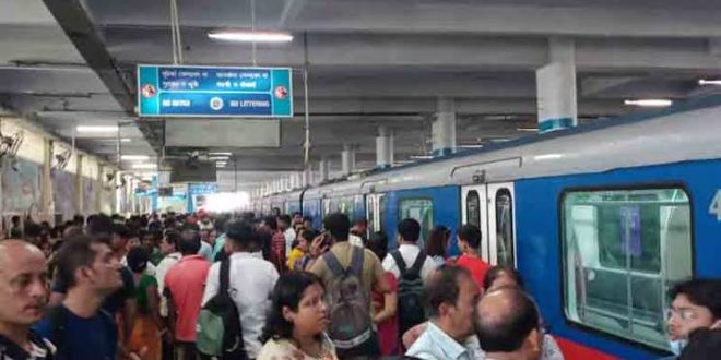 দেবরীনা মণ্ডল সাহা, কলকাতা :- সপ্তাহান্তে ফের মেট্রোয় বিভ্রাট| শনিবার দুপুরে মেট্রোয় গোলযোগের জেরে বিপাকে পড়লেন যাত্রীরা। শনিবার দুপুর প্রায় সাড়ে ৩টে থেকে যান্ত্রিক ত্রুটির কারণে ময়দান থেকে কবি সুভাষ মেট্রো চলাচল সম্পূর্ণ বন্ধ থাকে ।ময়দান থেকে দক্ষিণেশ্বরে মেট্রো চললেও বাকি অংশে বন্ধ। যতীন দাস পার্ক ও নেতাজি ভবন স্টেশনের মাঝে টেকনিক্যাল কিছু সমস্যার জন্য দাঁড়িয়ে যায় মেট্রো। চূড়ান্ত ভোগান্তিতে যাত্রীরা। শনিবার দুপুর ৩টে ৩২ মিনিট নাগাদ মেট্রোয় যান্ত্রিক ত্রুটি দেখা যায় বলে কর্তৃপক্ষ জানিয়েছেন। আপ ও ডাউনে পরপর দাঁড়িয়ে যায় রেকগুলি। দরজা খুলে যায়। যাত্রীদের নেমে যেতে বলা হয়। কিন্তু কী কারণে চলাচলে ছেদ পড়ল তখনই তা জানা যায়নি। পরে খবর পাওয়া যায়, যতীন দাস পার্ক ও নেতাজি ভবন স্টেশনের মাঝে কিছু টেকনিক্যাল সমস্যার জন্য দাঁড়িয়ে পড়েছে মেট্রো। তবে কিছুক্ষণের মধ্যেই ময়দান- দক্ষিণেশ্বর পর্যন্ত মেট্রো চালানো শুরু হয়। এই স্টেশনগুলির মাঝে আপ-ডাউনেই মেট্রো চলছে।
