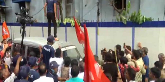 প্রসেনজিৎ ধর, কলকাতা :- সিঙ্গুরের নার্সের মৃত্যুর আঁচ কলকাতায়। মৃতার দেহ নিয়ে বিজেপি ও সিপিএমের মধ্যে টানাটানি, ধস্তাধস্তি। দেহের দখলদারি নিয়ে সংঘর্ষে বিজেপি-সিপিএম।দু’পক্ষের মধ্যে তুমুল হইহট্টগোল চলে। মৃতদেহের দখল কারা নেবে, তা নিয়ে দু’পক্ষের মধ্যে গন্ডগোল শুরু হয়। দু’পক্ষকেই সরিয়ে দেওয়ার চেষ্টা করে পুলিশ।শ্রীরামপুরের ওয়ালশ হাসপাতাল থেকে শুক্রবার কলকাতা মেডিক্যাল কলেজে ময়নাতদন্তের নিয়ে আসা হয়েছিল নার্সের দেহ। তাঁর দেহ মেডিক্যাল কলেজে পৌঁছোতেই বিজেপি এবং সিপিএমের কর্মী, সমর্থকেরা সেখানে পৌঁছে যান। দেহ দখল নিয়ে শুরু হয়ে যায় দু’পক্ষের মধ্যে বচসা। সেই বচসা হাতাহাতিতে পৌঁছোয়। সিপিএমের অভিযোগ, নার্সের দেহ হাইজ্যাক করার চেষ্টা করা হচ্ছে। মর্গের সামনে যখন এই গন্ডগোল চলছে, সেখানে গাড়ির বিতরে অসহায় ভাবে বসে থাকতে দেখা যায় নার্সের পরিবারের সদস্যদের।মৃতার বাবার দাবি, শ্রীরামপুরে ময়নাতদন্ত করলে ভাল হত। কম্যান্ডো হাসপাতালে ময়নাতদন্ত করা হোক বলেও দাবি তুলেছেন তিনি। কলকাতা মেডিক্যাল কলেজে তিনি ময়নাতদন্ত করাতে চান বলেও জানিয়েছেন। বিজেপি এবং বামেরা পরস্পরের বিরুদ্ধে অভিযোগ করেছে, তৃণমূলকে রক্ষা করতে সাহায্য করছে দুই দল। বিজেপির উত্তর কলকাতা জেলা সভাপতি তমোঘ্ন ঘোষ বলেন, ‘‘আমরা চাই মৃতার দেহের ময়নাতদন্ত হোক এমস বা কম্যান্ড হাসপাতালে। সিপিএম এখানে এসে তৃণমূলের হয়ে সেটা আটকাতে চাইছে। ওরা এই রাজনীতি দিল্লিতে গিয়ে করুক।’’ পাল্টা এসএফআই রাজ্য সম্পাদক দেবাঞ্জন দে বলেন, ‘‘তৃণমূলের হয়ে বিজেপি মৃতার পরিবারকে কিনতে নেমেছে। তৃণমূলের হিম্মত হচ্ছে না এখানে আসার, তাই বিজেপিকে পাঠিয়ে দিয়েছে।’’