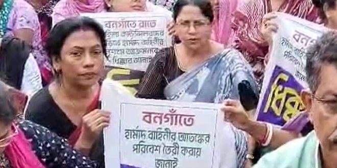 প্রসেনজিৎ ধর :- বনগাঁ পুরসভার ছয় কাউন্সিলরের বাড়ির সামনে হামলার অভিযোগ উঠল। বুধবার রাতের অন্ধকারে তাঁদের বাড়ি লক্ষ্য করে পাথর ছোড়া হয়েছে, গালিগালাজ করা হয়েছে বলে অভিযোগ। স্থানীয়দের একাংশ দাবি করেছেন, এটা আসলে তৃণমূলের গোষ্ঠীকোন্দল। বিজেপিও একই অভিযোগ করেছে। যদিও তৃণমূল সে কথা মানেনি। যে কাউন্সিলরদের বাড়ি লক্ষ্য করে হামলা হয়েছে, তাঁদের নিয়ে বৃহস্পতিবার থানার সামনে অবস্থান-বিক্ষোভ করেন রাজ্যসভার সাংসদ তথা বনগাঁ সাংগঠনিক জেলার তৃণমূল চেয়ারপার্সন মমতা বালা ঠাকুর।বুধবার রাতে প্রথম হামলা হয় বনগাঁ পুরসভার ২ নম্বর ওয়ার্ডের তৃণমূল কাউন্সিলর শিখা ঘোষ ও তৃণমূল ওয়ার্ড সভাপতি উত্তম ঘোষের বাড়িতে। অভিযোগ, তাঁদের বাড়ির সামনে ইট ছোড়া হয়। গালিগালাজও করে একদল মদ্যপ যুবক। সিসিটিভিও ভাঙচুর করা হয়। কাউন্সিলর শিখা ঘোষের স্বামী উত্তম ঘোষ জানান, “প্রায় শতাধিক বাইক বাহিনী বাড়ির সামনে এসে দাঁড়ায়। গালিগালাজ করে ইট ছোড়া হয়। হামলায় সিসি ক্যামেরাও ভেঙে দেওয়া হয়।” পুলিশকে খবর দেওয়া হলেও দেরিতে আসে বলেই অভিযোগ।এরপর একে একে বনগাঁ পুরসভার ১ নম্বর ওয়ার্ড কাউন্সিলর দিপালী বিশ্বাসের বাড়িতেও দুষ্কৃতী হামলা চলে। ১৯ নম্বর ওয়ার্ড কাউন্সিল শর্মিলা দাস বৈরাগীর বাড়িতে দুষ্কৃতীরা ৬ রাউন্ড গুলি চালায় বলে অভিযোগ। শুধু তাই নয়, ৮ ও ৯ নম্বর ওয়ার্ড কাউন্সিলর বন্দনা কীর্তনীয়া ও বন্দনা মুন্সির বাড়ির সামনেও বোমাবাজি হয় বলেই অভিযোগ।সাংসদ মমতা এই বিষয়ে পুলিশের ভূমিকা নিয়েও প্রশ্ন তোলেন। তিনি জানান, বিষয়টি দলের ঊর্ধ্বতন কর্তৃপক্ষকে জানানো হয়েছে। বনগাঁ উত্তরের বিজেপি বিধায়ক অশোক কীর্তনিয়া ফেসবুক লাইভ করে দাবি করেছেন, বনগাঁ পুরসভার পুরপ্রধানের বিরুদ্ধে অনাস্থা প্রস্তাবে যাঁরা সমর্থন করেনি, সেই কাউন্সিলরদের বাড়িতে হামলা হয়েছে। তিনি জানিয়েছেন, বনগাঁর মানুষ রাস্তায় নামবেন।গোষ্ঠী কোন্দলের অভিযোগ মানতে নারাজ বনগাঁ সাংগঠনিক জেলার তৃণমূল সহ-সভাপতি প্রসেনজিৎ ঘোষ। তাঁর দাবি, বিরোধীদের মদতেই এই ধরনের ঘটনা ঘটছে।