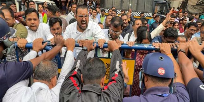 প্রসেনজিৎ ধর, কলকাতা :-দফায় দফায় উত্তেজনা কলকাতায় রাজ্য মুখ্য নির্বাচনী আধিকারিক (সিইও)-র দফতরে। এসআইআর নিয়ে নালিশ জানাতে গিয়ে বিরোধী দলনেতা শুভেন্দু অধিকারীকে ‘গো ব্যাক’ স্লোগান ‘বিএলও অধিকার রক্ষা কমিটি’র সদস্যদের। পালটা স্লোগান দেন বিজেপি নেতাকর্মীরা, যা নিয়ে দুপক্ষের মধ্যে একেবারে উত্তপ্ত পরিস্থিতি তৈরি হয়। ঘটনাস্থলে ছুটে আসেন পুলিশের বিশাল বাহিনী। কোনও রকমে পরিস্থিতি স্বাভাবিক করা হয়।সোমবার ‘তৃণমূলপন্থী’ বিএলও-দের একাংশ স্মারকলিপি জমা দিতে যান CEO দফতরে। আর তখনই পূর্ব নির্ধারিত কর্মসূচি অনুযায়ী CEO দফতরে যান বিজেপি বিধায়করা। চলতে থাকে স্লোগান। পাল্টা স্লোগান। প্রথম পর্বের পর দ্বিতীয় পর্বে আরও তপ্ত হয়ে ওঠে পরিস্থিতি। মুখ্য নির্বাচন আধিকারিক মনোজ আগরওয়ালের সঙ্গে সাক্ষাৎ-স্মারকলিপি পেশের পর দ্বিতীয় ফেজে আরও তপ্ত হয়ে পরিস্থিতি। রাজ্য বিধানসভার বিরোধী দলনেতাকে ঘিরে স্লোগান দিতে থাকেন বিএলও-রা। পাল্টা বিএলও-দের উদ্দেশে হাত উঁচিয়ে চোর চোর স্লোগান দিতে থাকেন। এক বেনজির দৃশ্য ধরা পড়ে CEO দফতরের সামনে।শুধু তাই নয়, ব্যারিকেড ভাঙার চেষ্টাও করেন বিক্ষোভকারীরা। যা নিয়ে একেবারে উত্তপ্ত পরিস্থিতি তৈরি হয়।এর মধ্যেই কোনওরকমে সিইও দপ্তরের ভিতরে প্রবেশ করেন শুভেন্দু অধিকারীর নেতৃত্বে বিজেপির প্রতিনিধিদল। শুরু হয় বৈঠক। সেই বৈঠকে ঘটনা নিয়ে ক্ষোভ উগরে দেন বিরোধী দলনেতা। প্রশ্ন তোলেন সিইও দপ্তরের নিরাপত্তা নিয়েও। শুভেন্দু অধিকারী বলেন, বর্তমান পরিস্থিতিতে সিইও দপ্তর যে নিরাপদ নয় তা ঘটনায় স্পষ্ট। বর্তমান জায়গা থেকে নিরাপদ স্থানে সিইও দপ্তর সরানোর কথাও বলেন তিনি। একইসঙ্গে কেন্দ্রীয় নিরাপত্তা বাহিনীকে মোতায়েনের আবেদনও জানান বিরোধী দলনেতা।একদিকে তাঁরা যখন সিইও দপ্তরে বৈঠক করছেন, অন্য দিকে সিইও দফতরের বাইরে বিক্ষোভ ক্রমশ বাড়তে থাকে।নতুন করে যাতে কোনও অপ্রীতিকর ঘটনা না ঘটে সেদিকে সতর্ক ছিল কলকাতা পুলিশ।