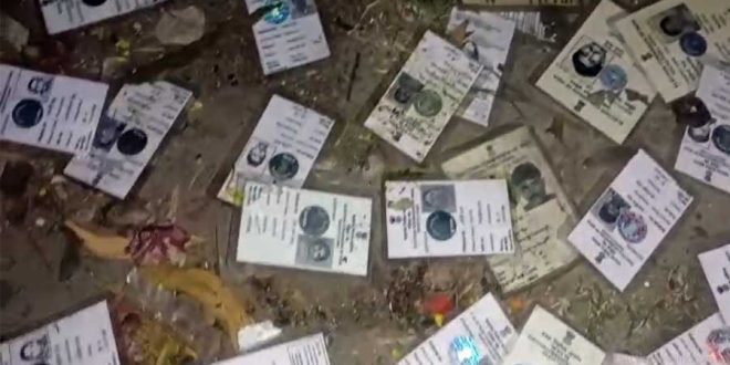 দেবরীনা মণ্ডল সাহা :-এসআইআর চলাকালীন ড্রেন থেকে উদ্ধার একাধিক ভোটার কার্ড। নদিয়ার নবদ্বীপে প্রতাপনগর হাসপাতাল রোডের পরিত্যক্ত এলাকা থেকে বিপুল পরিমাণ ভোটার কার্ড উদ্ধারকে কেন্দ্র করে ছড়াল চাঞ্চল্য। ঘটনাস্থলে পৌঁছে পুলিশ উদ্ধার হওয়া কার্ডগুলির সত্যতা যাচাই শুরু করেছে। স্থানীয় বাসিন্দাদের দাবি, কার্ডগুলোর নাম ঠিকানা এলাকার বাসিন্দাদের সঙ্গে মিলে গেলেও সংশ্লিষ্ট ব্যক্তিদের কাছে তাঁদের আসল ভোটার কার্ড ঘরেই রয়েছে। ফলে একই নামের নকল বা অতিরিক্ত কার্ড কীভাবে রাস্তায় এল, তা নিয়ে উঠেছে গুরুতর প্রশ্ন।জানা যায়, স্থানীয়রা নদিয়ার নবদ্বীপে প্রতাপনগর হাসপাতাল রোডের পাশে একটি ড্রেনে একাধিক ভোটার কার্ড পড়ে থাকতে দেখেন। সঙ্গে সঙ্গে খবর দেওয়া হয় পুলিশে। স্থানীয়রা জানিয়েছেন, কার্ডগুলোর নাম ঠিকানা এলাকার বাসিন্দাদের সঙ্গে মিলে গেলেও সংশ্লিষ্ট ব্যক্তিদের কাছে তাদের আসল ভোটার কার্ড ঘরেই রয়েছে। ফলে একই নামের নকল বা অতিরিক্ত কার্ড কীভাবে রাস্তায় এল, তা নিয়ে উঠেছে গুরুতর প্রশ্ন। স্থানীয় বিজেপি নেতৃত্বের দাবি, এসআইআর আবহে যে অনিয়ম হচ্ছে এই বিষয়ে আগেই আশঙ্কা প্রকাশ করা হয়। যেভাবে এদিন একাধিক ভোটার কার্ড উদ্ধার হল তারই প্রমাণ। বিজেপির দাবি, তৃণমূল ভয় পেয়ে বিভিন্ন কারচুপির পথ নিয়েছে।