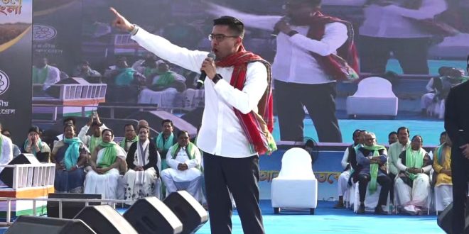 নিজস্ব সংবাদদাতা :- তৃণমূলের ভোটকুশলী সংস্থা আইপ্যাকের সল্টলেকের অফিস এবং সংস্থার কর্ণধার প্রতীক জৈনের লাউডন স্ট্রিটের বাড়িতে ইডির তল্লাশির ঘটনার জেরে বৃহস্পতিবার থেকেই সরগরম রাজ্য রাজনীতি| এদিন ইডির তল্লাশির মাঝেই প্রতীকের বাড়িতে ছুটে গিয়েছিলেন মুখ্যমন্ত্রী মমতা বন্দ্যোপাধ্যায় | অবশেষে, শুক্রবার এ বিষয়ে মুখ খুললেন তৃণমূলের সেকেন্ড ইন কম্যান্ড |আইপ্যাকের অফিসে ইডি হানা প্রসঙ্গে বলতে গিয়ে অভিষেক বলেন, “এরা ইডিকে ব্যবহার করবে। ভোটার লিস্টে তৃণমূলের জন্য অ্যাপ তৈরি করেছে যাতে মানুষের অসুবিধা না হয়। দিদির দূত বলে আইপ্যাক ওই অ্যাপ তৈরি করেছে। কিন্তু এসআইআরে তৃণমূলের জন্য কাজ করছে, কেন গরিব মানুষের সাহায্য করছে তার জন্য কালকে ইডি পাঠিয়ে রেইড করেছে। আর সাধারণ মানুষের মৌলিক অধিকার ইসিকে পাঠিয়ে হরণ করছে। এই হচ্ছে বিজেপির ফর্মুলা।” সুর আরও চড়িয়ে বলেন, “তোমাদের কাছে সব আছে ভাই, মানুষ নেই। তৃণমূলের কাছে কিছু নেই, মানুষ আছে। খেলা হবে। গণতন্ত্রে গণদেবতা তো শেষ কথা বলে। অমিত শাহ তো ভোট দেবে না, নরেন্দ্র মোদী তো ভোট দেবে না, মিডিয়ার লোক তো ভোট দেবে না। ভোট দেবে তো খেটে খাওয়া মানুষ, শ্রমিক-কৃষক-মা-ভাইয়েরা। এমন জবাব দেবেন যেন ওদের অহংকার ভেঙে যেন চূর্ণ-বিচূর্ণ হয়।”এদিন মতুয়াগড় তাহেরপুরের সভামঞ্চ থেকে অভিষেক বলেন, ‘‘আইপ্যাক বলে একটা সংস্থা আছে। যারা আমাদের হয়ে কাজ করছে। SIR-এ সাধারণ মানুষের হয়ে কাজ করছে। কেন করবে? তাই কাল আই প্যাকের অফিসে ইডি পাঠিয়েছে। তোমাদের কাছে সব আছে। আমাদের কাছে মানুষ আছে। ১০-০ গোলে হারবে।’’