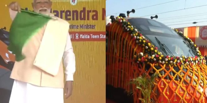 দেবরীনা মণ্ডল সাহা:-শনিবার মালদহে দেশের প্রথম স্লিপার বন্দে ভারত এক্সপ্রেসের উদ্বোধন করলেন প্রধানমন্ত্রী নরেন্দ্র মোদী| মালদহ টাউন স্টেশন থেকেই ট্রেনটির আনুষ্ঠানিক সূচনা করেন তিনি। এরপরই অনুষ্ঠানে বক্তব্য রাখতে গিয়ে প্রধানমন্ত্রী বলেন, “মালদহ থেকে এই ট্রেন যাত্রা শুরু করায় এলাকার যোগাযোগ ব্যবস্থায় নতুন গতি আসবে। এর ফলে সাধারণ মানুষের যাতায়াত যেমন সহজ হবে, তেমনই বাংলার যুবসমাজের সামনে নতুন সুযোগের দরজা খুলবে।”ট্রেনের সূচনা করার পর বক্তব্য রাখতে গিয়ে মোদি বলেন, ”আজ থেকে বন্দে ভারত স্লিপার ট্রেন চালু হল দেশে। আপনাদের যাত্রা আরও সহজ, আনন্দদায়ক হল। আমি মালদহ স্টেশনে ট্রেনে বসে যাত্রীদের কয়েকজনের সঙ্গে কথা বললাম। তাঁরা ট্রেনে বসেই দারুণ আরাম উপভোগ করছেন বলে আমাকে জানিয়েছেন। এই ট্রেন মেড ইন ইন্ডিয়া, এতে মিশে রয়েছে প্রতি ভারতীয়ের শ্রমের ঘাম। দেশের আধুনিক রেল পরিষেবার সুবিধা পাবেন বাংলার মানুষ। আরও চারটি অমৃত ভারত ট্রেন ছাড়বে বাংলা থেকে।”প্রধানমন্ত্রী আরও জানান, এই বন্দে ভারত সম্পূর্ণ দেশীয় প্রযুক্তিতে তৈরি। দেশের শ্রম ও দক্ষতার ফলেই এমন ট্রেন সম্ভব হয়েছে। মা কালী ও মা কামাখ্যার ভূমিকে যুক্ত করছে এই স্লিপার বন্দে ভারত, যা দেশের মধ্যে প্রথম। আগামী দিনে বন্দে ভারত ট্রেনের পরিসর আরও বাড়ানো হবে বলেও আশ্বাস দেন তিনি। ১৮ জানুয়ারি রবিবার দুপুর ৩টে নাগাদ হুগলির সিঙ্গুরে যাবেন প্রধানমন্ত্রী। সেখানে উন্নয়নমূলক প্রকল্পের জন্য প্রায় ৮৩০ কোটি টাকার শিলান্যাস করার কথা রয়েছে তাঁর। প্রধানমন্ত্রী সিঙ্গুরে বালাগড়ে এক্সটেন্ডেড পোর্ট গেট সিস্টেমের শিলান্যাস করবেন। পাশাপাশি শিলান্যাস করবেন জলপথ পরিবহণ টার্মিনাল এবং একটি রেল ওভারব্রিজও। কলকাতায় একটি অত্যাধুনিক ইলেকট্রিক ক্যাটামারানেরও উদ্বোধন করবেন তিনি।