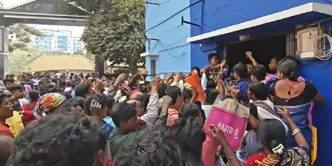 প্রসেনজিৎ ধর, হুগলি:- যুবসাথী ও ভূমিহীনদের জন্য ফর্ম তুলতে ব্যাপক উত্তেজনা আরামবাগ বিডিও অফিস চত্বরে। হাজার হাজার মানুষের ভিড়ে ব্যাপক বিশৃঙ্খলা। ঠেলাঠেলি, ধস্তাধস্তি,এমনকি ফর্ম কাড়াকাড়ি হয়। ফলে শ্বাসরোধ হওয়ার মত অবস্থা।অভিযোগ, ফর্ম নিয়ে কাড়াকাড়ি, ধস্তাধস্তিতে অনেকেই অসুস্থ বোধ করেন। আরামবাগ থানার আইসি রাকেশ সিংয়ের নেতৃত্বে পরিস্থিতি সামাল দিতে বিশাল পুলিশ বাহিনী ও RAF নামানো হয়। প্রত্যক্ষদর্শীরা জানান, তাতেও গন্ডগোল, হুড়োহুড়ি থামানো যায়নি। ধস্তাধস্তি চলতেই থাকে।দূর দূরান্ত থেকে বিডিও অফিসে এসেছেন সরকারি ভাতার ফর্ম তুলতে। কেউ তার কোলের শিশুকে নিয়েও আসেন। দাঁড়ান লাইনে।কিন্তু ছিটকে যান। অনেকে আবার ফর্ম না নিয়েই চলে যান।আরামবাগের বিডিও সুব্রত মল্লিক বলেন, ‘সরকারি প্রকল্পের সুবিধা সঠিক ভাবে পেতে মানুষের মধ্যে একটা উদ্দীপনা রয়েছে। এত মানুষ একসঙ্গে চলে আসবেন, সেটা বোঝা যায়নি। শান্তিপূর্ণ ভাবে ফর্ম বিতরণ করা হচ্ছে। পুলিশ ভালো কাজ করেছে।’