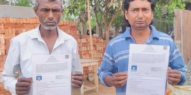 প্রসেনজিৎ ধর :-পশ্চিমবঙ্গে ভোটার তালিকার বিশেষ নিবিড় সংশোধনী (এসআইআর)-এর চূড়ান্ত তালিকায় নাম বাদ যাওয়া দুই ব্যক্তি সিএএতে আবেদন করে নাগরিকত্ব পেলেন | বাগদা থানার নাটাবেড়িয়া পাঁচপোতার এলাকার দুই ভাই লক্ষ্মণ ভদ্র ও প্রেমচাঁদ ভদ্র মঙ্গলবার অনলাইনের মাধ্যমে নাগরিকত্বের সার্টিফিকেট হাতে পেয়েছেন |হাতের নাগরিকত্বের সার্টিফিকেট নিয়ে তাঁরা জানান, এবার ভোটার তালিকায় নাম তুলবেন। ভোট যাতে দিতে পারেন, সেজন্য নির্বাচন কমিশনের কাছে আবেদনও করবেন। সেই কথা দু’জনেই জানিয়েছেন।উত্তর ২৪ পরগনার বাগদা থানার নাটাবেড়িয়া পাঁচপোতার এলাকার দুই ভাই লক্ষ্মণ ভদ্র ও প্রেমচাঁদ ভদ্র। আদতে বাড়ি বাংলাদেশে হলেও দীর্ঘ সময় ধরে তাঁরা এপাড়ে বসবাস করেন। কিন্তু এদেশের সঠিক পরিচয়পত্র তাঁদের ছিল না বলে অভিযোগ। জানা গিয়েছে, চার দশক আগে বাংলাদেশ থেকে এদেশে এসেছিলেন লক্ষ্মণ ও প্রেমচাঁদ। এরপর আর ফিরে না গিয়ে এপাড়েই বাগদা অঞ্চলে থেকে যান| দুই ভাই জানিয়েছেন, ৪০ বছর আগে বাংলাদেশ থেকে এসে ভারতে বসবাস শুরু করেছিলেন| এদেশে এসে তাঁরা ভোটার তালিকায় নাম তুলেছিলেন| এসআইআর-এর চূড়ান্ত তালিকায় তাদের নাম বাদ গিয়ে ছিল| মাস চারেক আগে তাঁরা সিএএ-তে আবেদন করেছিলেন| অনলাইনের মাধ্যমে নাগরিকত্ব কার্ড পেয়ে তাঁরা এবার ভোটার তালিকায় নাম তুলবেন বলে জানিয়েছেন| তাঁরা নির্বাচন কমিশনের কাছে আবেদন করবেন যাতে ভোট দিতে পারেন |এসআইআর-এ বহু মতুয়া উদবাস্তুদের নাম বাদ গিয়েছে বলে অভিযোগ উঠেছে | তৃণমূল-সহ নানা দলের অভিযোগ, নাগরিকত্ব নিয়ে রাজনীতি চলছে| বিধানসভা নির্বাচনের দিন ঘোষণা হয়ে গিয়েছে ইতিমধ্যেই| এর ফলে উদ্বাস্তু পরিবারে ওই দুই সদস্য সিএএতে আবেদন করে নাগরিকত্ব পেলেও তাঁরা কি এবার ভোট দিতে পারবেন সে প্রশ্ন নিয়েই বিভিন্ন জায়গায় ছোটাছুটি শুরু করেছেন |