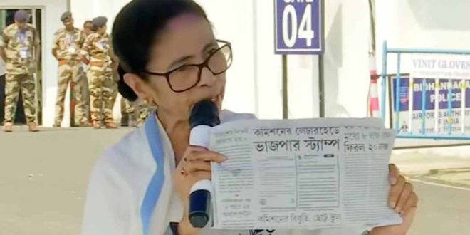 নিজস্ব সংবাদদাতা,কলকাতা :- নির্বাচন কমিশনের একটি ছ’বছরের পুরনো নথি সোমবার প্রকাশ্যে এনেছিলেন তৃণমূল সাংসদ মহুয়া মৈত্র। যাতে পদ্মফুল চিহ্ন-সহ বিজেপির নাম লেখা সিল ব্যবহার করা হয়েছিল। মঙ্গলবার বিধানসভার নির্বাচনী প্রচারে উত্তরবঙ্গ রওনা হওয়ার আগে সেই নথি নিয়েই কমিশনকে বিঁধলেন তৃণমূলের সর্বময় নেত্রী মমতা বন্দ্যোপাধ্যায়।হাতে ওই কাগজের প্রতিলিপি নিয়ে মমতা বলেন, ‘‘কমিশনের কাগজে বিজেপি পার্টির স্ট্যাম্প। বিজেপির চিহ্ন। পিছন থেকে খেলছেন কেন? সামনে এসে খেলুন।’’ ছ’বছর আগের ওই ঘটনাকে ‘ক্লারিক্যাল মিস্টেক’ বলে সাফাই দিয়েছে কমিশন। সেই প্রসঙ্গ তুলে মমতা বলেন, ‘‘এটা ক্লারিক্যাল মিস্টেক, না রাজনৈতিক উদ্দেশ্যপ্রণোদিত?’’ মঙ্গলবার মমতা বলার আগে সকালে এ নিয়ে এক্স হ্যান্ডলে পোস্ট করে কমিশনকে নিশানা করেন তৃণমূলের ‘সেনাপতি’ অভিষেক বন্দ্যোপাধ্যায়।মমতা বন্দ্যোপাধ্যায়ের আরও দাবি, ”এই চিঠি শুধু কেরলের নয়। এখানে স্পষ্ট লেখা আছে, সমস্ত রাজ্য ও কেন্দ্রশাসিত অঞ্চলের জন্য প্রযোজ্য। বলা হচ্ছে, ক্লারিক্যাল মিসটেক। ক্লারিক্যাল মিসটেক নাকি পলিটিক্যাল এজেন্ডা?” এ প্রসঙ্গে বিরোধীদের কাছে তাঁর আবেদন, ”সবার বিরোধী রাজনৈতিক দলের কাছে আমার আবেদন, কমিশনের এই একপেশে কার্যকলাপের বিরুদ্ধে সকলে একসঙ্গে প্রতিবাদ করুন। কোনও রং না দেখে জোটবদ্ধ হতে হবে।” ঘটনা ২০১৯ সালের। সেসময়ে নির্বাচন কমিশনের পাঠানো একটি চিঠি কেরল সিপিএম পোস্ট করে গোটা বিষয়টি প্রকাশ্যে আনে সোমবার। সোশাল মিডিয়ায় পোস্ট করা ওই চিঠিতে দেখা গিয়েছে, বিজেপির প্রতীক -সহ সিলমোহর আছে। তা নিয়ে শুরু হয় চর্চা। তৃণমূল এতদিন কমিশন-বিজেপি আঁতাঁতের যে অভিযোগ তুলেছিল, তার সত্যতা প্রমাণিত হয় ওই চিঠিতে। আর তা নিয়ে সোমবার পালটা সোশাল মিডিয়ায় পোস্ট করেন তৃণমূলের সর্বভারতীয় সাধারণ সম্পাদক অভিষেক বন্দ্যোপাধ্যায়-সহ অনেকে। আর মঙ্গলবার তা নিয়ে খোদ মুখ্যমন্ত্রী সরব হলেন।