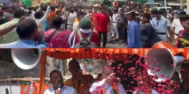 প্রসেনজিৎ ধর, কলকাতা :- ভবানীপুর কেন্দ্রের প্রার্থী হিসাবে মনোনয়ন জমা দিলেন শুভেন্দু অধিকারী। সেই সময় তাঁর পাশেই ছিলেন কেন্দ্রীয় স্বরাষ্ট্রমন্ত্রী অমিত শাহ। মনোনয়ন জমা দেওয়ার পর শাহকে প্রণামও করেন বিরোধী দলনেতা। এদিকে, শুভেন্দুর মনোনয়ন কর্মসূচির সময় তৃণমূলের বিক্ষোভ ঘিরে উত্তপ্ত মুখ্যমন্ত্রী তথা তৃণমূলনেত্রী মমতা বন্দ্যোপাধ্যায়ের কেন্দ্র ভবানীপুর।তৃণমূল কর্মী সমর্থকরা বিক্ষোভ দেখাতে শুরু করে। ওঠে ‘জয় বাংলা’ স্লোগান। দেওয়া হয় ‘চোর-চোর’ স্লোগানও। পালটা স্লোগান দিতে শুরু করেন বিজেপি কর্মী সমর্থকরা। স্লোগান পালটা স্লোগানকে কেন্দ্র করে পরিস্থিতি একেবারে অগ্নিগর্ভের আকার নেয়। কড়া হাতে পরিস্থিতি নিয়ন্ত্রণ করেন কর্তব্যরত পুলিশ কর্মীরা। এই অবস্থায় ছাদ খোলা গাড়ি থেকে নেমে পড়েন স্বরাষ্ট্রমন্ত্রী অমিত শাহ। নেমে কনভয়ের অন্য একটি গাড়িতে চাপতে হয় তাঁকে। আর এই উত্তেজনার মধ্যেই সার্ভে বিল্ডিংয়ে শাহকে পাশে নিয়েই মনোনয়ন দাখিল করেন ভবানীপুর কেন্দ্রের বিজেপি প্রার্থী শুভেন্দু অধিকারী। সূত্রের খবর, আগে থেকেই ইঙ্গিত মিলেছিল যে ওই এলাকায় ঝামেলা হতে পারে। কালীঘাটে মমতা বন্দ্যোপাধ্যায়ের বাড়ির কাছে সেই রোড শো পৌঁছতেই তৃণমূলের কর্মীরা স্লোগান তুলতে শুরু করেন। পাল্টা স্লোগান তোলেন বিজেপি কর্মীরা। দুই শিবিরের তীব্র স্লোগান ও বাদানুবাদ শেষমেশ হাতাহাতিতে গড়ায়। ব্যাপারটা এখানেই থেমে ছিল না। সার্ভে বিল্ডিংয়ের কাছে তারস্বরে দলীয় প্রচার সঙ্গীত বাজাতে শুরু করে তৃণমূল বলে অভিযোগ। তাতেও উত্তেজনা বাড়ে। বিপুল পুলিশ বাহিনী মোতায়েন করেও তা ঠেকানো যায়নি। বরং পুলিশের সামনেই দু’পক্ষের মারপিট শুরু হয়ে যায়।
