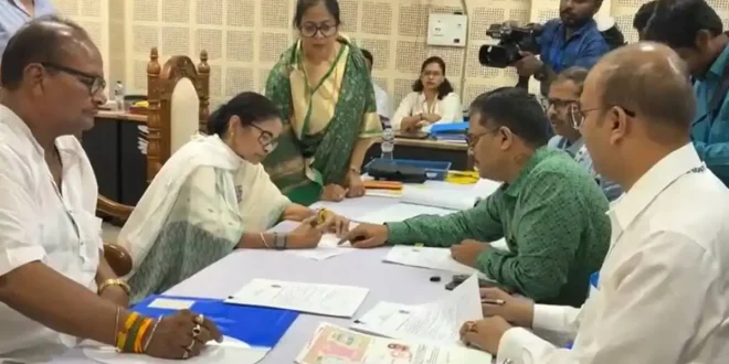 দেবরীনা মণ্ডল সাহা, কলকাতা :- পূর্ব নির্ধারিত সূচি অনুযায়ী তৃণমূল সুপ্রিমো মমতা ব্যানার্জি বুধবার সকালে দলীয় নেতা কর্মীদের সঙ্গে মিছিল করে আলিপুরে মনোনয়ন পেশ করলেন। মমতা ব্যানার্জির সঙ্গে রয়েছেন দলের শীর্ষ নেতৃত্ব। এদিন বিরাট মিছিল করে মনোনয়ন পেশ করেন মুখ্যমন্ত্রী। কালীঘাট থেকে আলিপুর পর্যন্ত বিরাট মিছিল করে তৃণমূল-কংগ্রেস | পূর্বসূচি অনুযায়ী, সকাল ১০ টা বেজে ৩০ মিনিটে কালীঘাট থেকে শুরু করেন মিছিল। ফিরহাদ হাকিম, তাঁর স্ত্রী, মেয়ে-সহ মিছিলে ছিলেন দলের কাউন্সিলর, নেতা-কর্মীরা। কড়া নিরাপত্তা বলয়ে মুড়ে ফেলা হয়েছিল এলাকা।আগেই জানা গিয়েছিল, ৮ এপ্রিল অর্থাৎ মঙ্গলবার মনোনয়ন পেশ করবেন মমতা। কালীঘাট থেকে মিছিল নিয়ে আলিপুরের সার্ভে বিল্ডিংয়ে পৌঁছবেন তিনি। সেই মতোই এদিন সকাল সাড়ে দশটায় কালীঘাটের বাড়ি থেকে বের হন তিনি। তাঁর অপেক্ষায় জমায়েত করেছিলেন কর্মী-সমর্থকরা। সকলের হাতে ছিল দলের পতাকা, বেলুন,ছিলেন ৮ কাউন্সিলরও। বিরাট মিছিল নিয়ে পৌঁছন আলিপুরের সার্ভে বিল্ডিংয়ে পৌঁছন মমতা। সেখানে মনোনয়ন পেশ করেছেন তৃণমূল সুপ্রিমো। জানা গিয়েছে, মমতা বন্দ্যোপাধ্যায়ের মনোনয়নের অন্যতম প্রস্তাবক ছিলেন ফিরহাদ হাকিমের স্ত্রী। মনোনয়ন পত্রে বাংলায় সই করেন মমতা। এরপর বেরিয়ে সার্ভে বিল্ডিংয়ে তাঁর অপেক্ষায় থাকা আমজনতার উদ্দেশ্যে হাত নাড়েন তিনি। এরপর তিনি বলেন, “আমি এখানেই আছি। এখানেই থাকি। এখান থেকেই আমার সবকিছু। ভবানীপুরের মানুষকে আমার প্রণাম। ভবানীপুরের পাশাপাশি ২৯৪ কেন্দ্রেই তৃণমূলের প্রার্থীকে ভোট দেওয়ার জন্য বলব।” মুখ্যমন্ত্রী আরও বলেন, “যারা অ্যাডজুডিকেশন আছে তারা জেনুইন ভোটার। তারা ট্রাইব্যুনালে যাবে এবং তাদের নাম তোলা হবে। তবে এখনও কেন এত দেরি হচ্ছে তা নিয়ে আমরা ফের ট্রাইব্যুনালের কাছে আবেদন করব।”