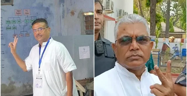 দেবরীনা মণ্ডল সাহা :-সকাল সকাল খড়্গপুর ২৬৩ নং বুথে ভোট দিলেন দিলীপ ঘোষ। ভোটকেন্দ্র থেকে বেরিয়েও দাবাং মোডে দিলীপ। সংবাদ মাধ্যমকে বেরিয়েই জানান, শান্তিপূর্ণ সুন্দর ভাবে ভোট দিয়েছেন তিনি। সাারা খড়গপুর থেকে পশ্চিমবঙ্গে শান্তিপূর্ণ ভাবেই ভোট হচ্ছে। আগে বিজেপির চোরাস্রোত বইছিল এখন সেটা প্রকাশ্যে আসছে। ফল বেরোলে নতুন সরকার গড়বে বিজেপি, ভোট দিয়ে বেরিয়ে জানালেন আত্মবিশ্বাসী দিলীপ ঘোষ |প্রথম দফার নির্বাচন শান্তিপূর্ণ হবে বলে মনে করেন দিলীপ ৷ তাঁর কথায়, “ভোট দিলাম খড়গপুরে শেরশাহ স্টেডিয়ামে ৷ আমার বুথ নং ২৬৩ ৷ ফাঁকা আছে ৷ গেলাম ভোট দিলাম ৷ তিনজন মাত্র অফিসার আছেন ৷ আর পার্টির এজেন্টরা আছেন ৷ খুব সুন্দর শান্তিপূর্ণ পরিবেশ ৷ ভালোভাবেই ভোট হচ্ছে ৷ আমার ধারণা সারা পশ্চিমবঙ্গে এমনভাবেই ভোট হচ্ছে ৷ সাধারণ মানুষ নিরাপত্তা চায় ৷ বাংলায় ভোট মানেই অশান্তি ৷ আজ বলে কথা নয় গত ৫০ বছর ধরেই এসব হচ্ছে ৷ এর মধ্যে দু’দফায় ভোট করার চ্যালেঞ্জ নিয়েছে কমিশন ৷”দিলীপ ঘোষের দাবি, এবার নির্বাচনে মানুষ ভয় কাটিয়ে প্রকাশ্যে বিজেপির হয়ে কথা বলছে। তাঁর কথায়, “মমতা হেরেই গেছেন। চারিদিকে এখন বিজেপির আবহাওয়া। আগে মানুষ এতটা প্রকাশ্যে কিছু বলত না, এখন নির্ভয়ে বলছে।”সকাল সকাল নন্দীগ্রামে ভোটদান সারলেন বিরোধী দলনেতা শুভেন্দু অধিকারী । হাসি মুখে বুথে ঢোকেন তিনি। সকলের বুথ এজেন্ট, অফিসারদের সঙ্গে সৌজন্য় বিনিময় করেন। এরপর নিজের ভোটদান সেরে দু আঙুল তুলে জয়ের চিহ্ন নিশ্চিত করেন। ‘পরিবর্তন আনুন,ভারতীয় জনতা পার্টির হাতে দায়িত্ব দিন’ বাইরে এসে মানুষকে বার্তা দেন শুভেন্দু। ‘ফাইনালি শান্তিপূর্ণ ভোট চলছে। খুব একটা উৎপাত করতে পারেনি’ , নাম না করেই তৃণমূলকে কটাক্ষ শুভেন্দুর ।