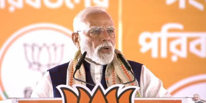 নিজস্ব সংবাদদাতা :- আগামী ৪ মার্চ বিধানসভা ভোটের গণনা পর্বের পরে আবার পশ্চিমবঙ্গে আসার বিষয়ে আশাবাদী তিনি। রাজ্যের প্রথম বিজেপি সরকারের শপথ কর্মসূচিতে অংশ নিতে। সোমবার প্রচারের শেষপর্বে এ কথা জানিয়েছিলেন প্রধানমন্ত্রী নরেন্দ্র মোদী। এর পরেই এআই সহায়তায় প্রণীত এক অডিয়োবার্তায় পশ্চিমবঙ্গবাসীর উদ্দেশে তিনি বললেন— ‘‘গণতন্ত্রের মন্দিরে বিজয় পতাকা ওড়ানোর এক অসাধারণ সুযোগ আপনাদের সামনে এসে উপস্থিত হয়েছে।’’প্রচারের শেষলগ্নে এসে বঙ্গবাসীকে খোলা চিঠি লিখলেন মোদি, দিলেন অডিও বার্তাও। সেখানে বিগত দিনগুলোতে মানুষের কাছে যে ভালোবাসা তিনি পেয়েছেন তা উল্লেখ করেন। বলেন, ‘পশ্চিমবঙ্গের সেবা ও সেখানকার নিরাপত্তা নিশ্চিত করা আমার কর্তব্য। পশ্চিমবঙ্গের প্রতিটি চ্যালেঞ্জকে সুযোগ ও সম্ভাবনায় রূপান্তরিত করা আমার সৌভাগ্য ও দায়িত্ব বলে মনে করি। এই দায়িত্ব থেকে আমি কখনই সরে আসব না। আমি আপনাদের কথা দিচ্ছি, আমরা সকলে মিলে পশ্চিমবঙ্গে বিজেপির মুখ্যমন্ত্রীর শপথ গ্রহণ সমারোহ উদযাপন করব।’ সমাজমাধ্যমে প্রকাশিত ওই অডিয়োবার্তায় শুরুতে মোদী লিখেছেন, ‘‘পশ্চিমবঙ্গে আমার প্রিয় পরিবারবর্গ, গণতন্ত্রের এই উৎসব আপনাদের সামনে বিজেপির বিজয়ের ধ্বজা ওড়ানোর এক সুবর্ণ সুযোগ নিয়ে এসেছে। আমি নিশ্চিত যে ২৯ এপ্রিল, আপনারা ভোটদানের এক নতুন রেকর্ড গড়বেন। এই ঐতিহাসিক মুহূর্তে, আমি একটি অডিয়োবার্তার মাধ্যমে আমার মনের ভাব ব্যক্ত করেছি…’’।এর পরে ৭ মিনিট ৩৮ সেকেন্ডের সেই অডিয়োর সূচনায় মোদী পশ্চিমবঙ্গের যুবসমাজের ‘উন্নয়নের রোডম্যাপ’ তুলে ধরেছেন। সেই সঙ্গে জানিয়েছেন, বাংলায় ভোটপ্রচারে তিনি অন্য ধরনের শক্তি অনুভব করেছেন। বললেন, ‘‘আমার বাংলার এই নির্বাচনী প্রচার অভিযানে বিন্দুমাত্র ক্লান্তি অনুভব করিনি।’’ সেই সঙ্গে মোদীর মন্তব্য, ‘‘আমি অনুভব করতাম আমার এক তীর্থযাত্রা হচ্ছে। আমি যখন মা কালীর ভক্তদের মধ্যে যেতাম, তখন সম্ভবত মা কালী নিজেই আমাকে নতুন শক্তিতে পরিপূর্ণ করে দিচ্ছিলেন।’’