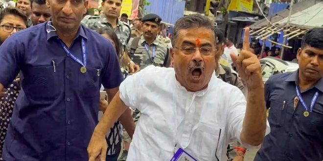 নিজস্ব সংবাদদাতা :-২০২৬-এর বিধানসভা নির্বাচনের দ্বিতীয় তথা শেষ দফার ভোটগ্রহণের দিনে চরম উত্তপ্ত হয়ে উঠল খোদ মুখ্যমন্ত্রী মমতা বন্দ্যোপাধ্যায়ের পাড়া কালীঘাট। বুধবার দুপুরে নির্বাচনী এলাকা পরিদর্শনে যাওয়ার পর প্রবল বিক্ষোভের মুখে পড়েন ভবানীপুরের বিজেপি প্রার্থী শুভেন্দু অধিকারী| পরিস্থিতি নিয়ন্ত্রণে আনতে শেষ পর্যন্ত লাঠিচার্জ করতে হয় কেন্দ্রীয় বাহিনীকে। বুধবার বেলা সাড়ে ১২টা নাগাদ ভবানীপুর বিধানসভা কেন্দ্রের মুক্তদল মোড় এলাকায় শুভেন্দু অধিকারীর গাড়ি পৌঁছলে উত্তেজনা চরমে ওঠে। সেখানে উপস্থিত তৃণমূলের মহিলা কর্মী-সমর্থকেরা ‘জয় বাংলা’ স্লোগান দেওয়ার পাশাপাশি শুভেন্দুকে লক্ষ্য করে ‘চোর-চোর’ স্লোগান দিতে থাকেন। এরপর বিজেপি প্রার্থীর গাড়ি কালীঘাটের পটুয়াপাড়ায় পৌঁছলে সেখানেও বিক্ষোভের মুখে পড়েন তিনি। বিজেপি কর্মীরাও পাল্টা ‘পিসি চোর-ভাইপো চোর’ স্লোগান দিলে এলাকা রণক্ষেত্রের চেহারা নেয়।